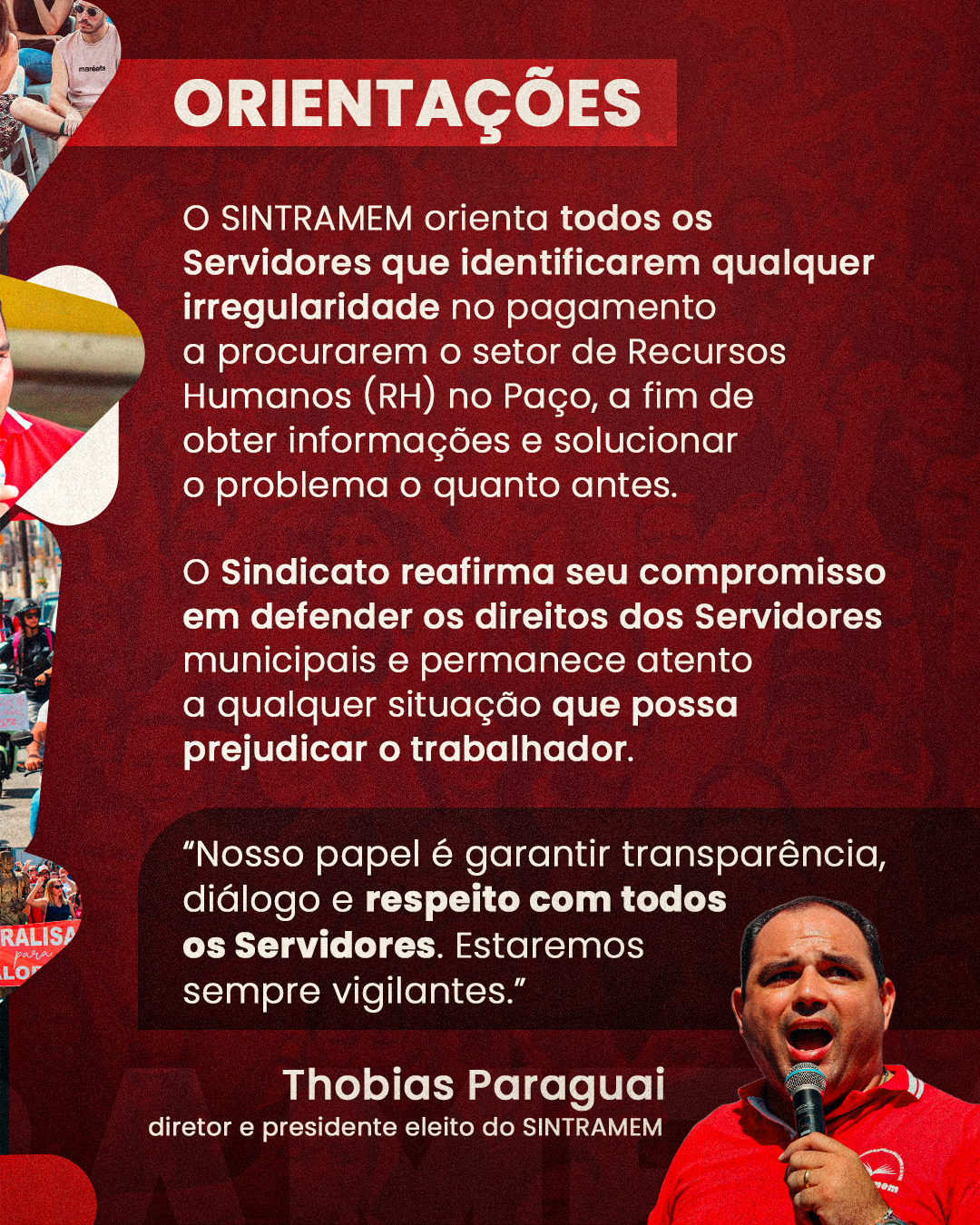 “Nosso papel é garantir transparência, diálogo e respeito com todos os Servidores. Estaremos sempre vigilantes”, destaca Thobias Paraguai, diretor e presidente eleito do SINTRAMEM.